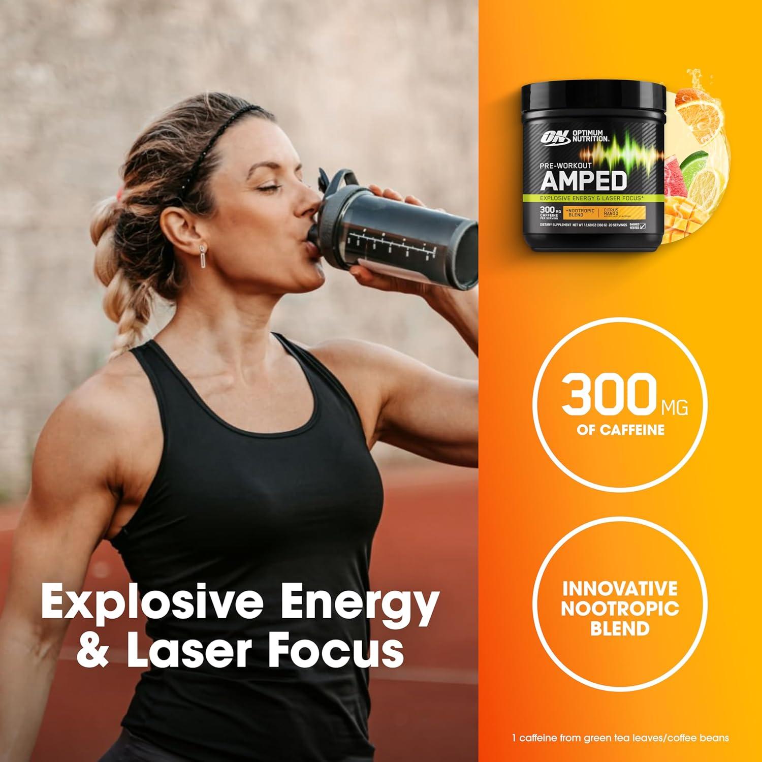 ON's Amped Pre-Workout unleashes explosive energy, laser focus, & supports enhanced endurance to help reach the pinnacle of your game, crush your next set, get that last rep, & achieve true gains.